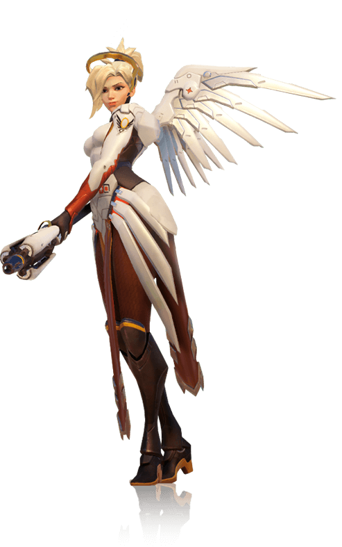 Mercy’s Valkyrie Suit helps keep her close to teammates like a guardian angel; healing, resurrecting or strengthening them with the beams emanating from her Caduceus Staff.